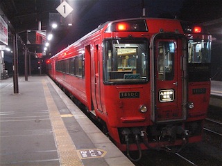今朝はまだ暗いうちから行動する。九州横断特急2号の自由席に乗って赤水を目指す。この九州横断特急は別府行きである。熊本から豊肥本線で大分を経由して別府に向かう。