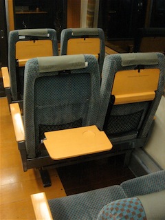車内は木目調で落ち着いた雰囲気である。テーブルも木製で温かい印象である。