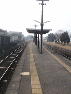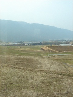 赤水駅を出て立野駅に向かう。写真ではわかりにくいが、斜め下に傾斜している大地である。これだけの勾配をこれから下ることになる。どうしてもスイッチバックが必要なわけだ。