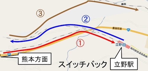 立野駅で方向転換してスイッチバックへ向かっていく。