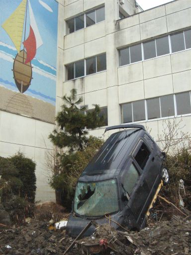 すでに被災してから一ヶ月が経つのに、湊中学校は写真のような状況です。何とも言えない、“現実離れした現実”がそこにはありました。