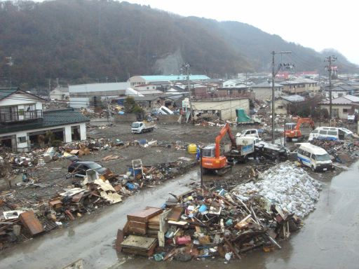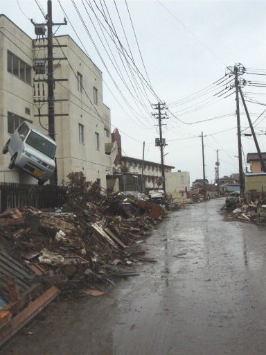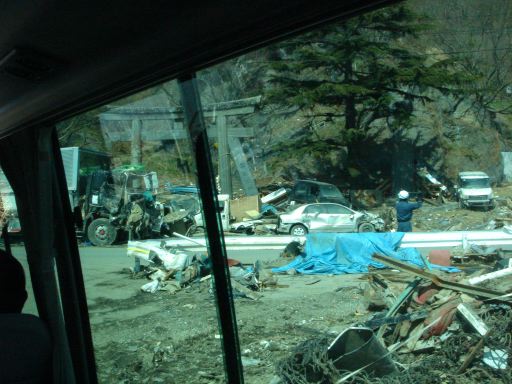 食後のミーティングの時です、余震が来たのは。下から突き上げるような縦揺れに続いて横揺れが・・・・・ 幸い震度は4でした(最大震度は宮城県栗原市の震度5弱)が、被災地での地震ということで神奈川で体感する揺れと違うような変な感覚でした。