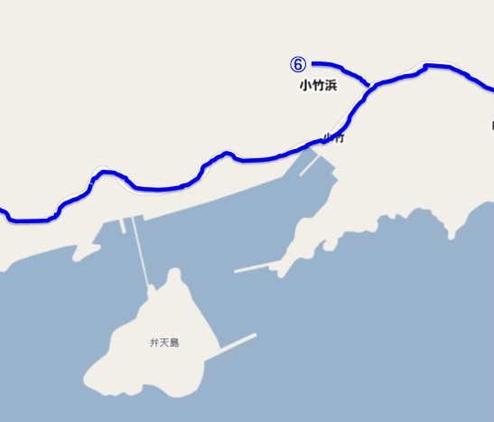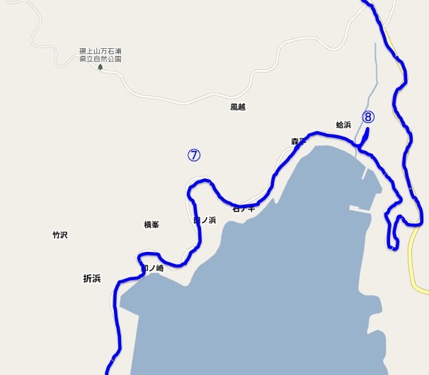 【地図5】 (6)小竹浜公民館、(7)峰耕寺、(8)蛤(はまぐり)浜避難所