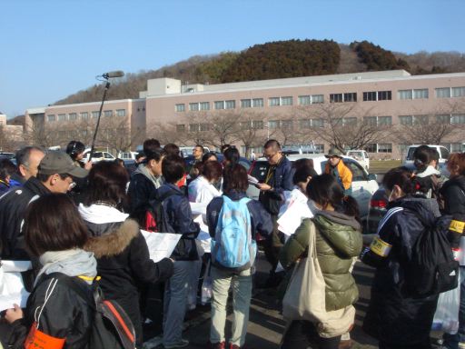 翌朝は快晴でした。Mo医師、K看護師、M看護師と私の四人で石巻専修大学に向かいます。ここはボランティアの拠点になっているらしく多くのテントが並んでいます。地区割りが発表され、我々は水明南地区の一区画を担当することになりました。調査は夕方まで続けられますが、我々は昼過ぎにこちらを出発しないといけないので、午前中だけの調査になります。