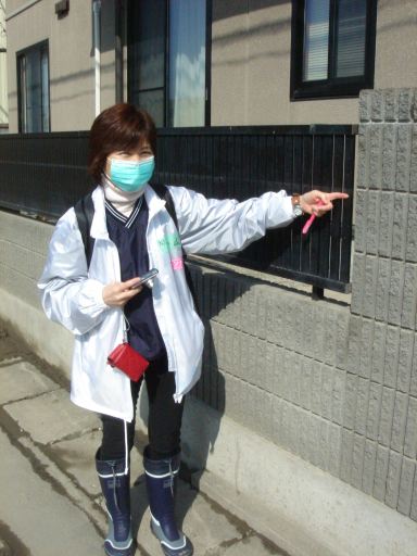 Mo医師とM看護師、私とK看護師がペアを組み、2組で調査を開始しました。水明南地区は断水と停電から復旧したものの、4月7日 の大きな余震で再び断水と停電になり、ライフラインの復旧が切実な問題となっていました。健常者は、自衛隊の船や図書館での自衛隊が用意する風呂に入浴することが可能ですが、要介護者・要支援者は移動の手助けがないと外出ができません。1軒以外はすべて1階が被災し、2階で生活していました。しかし要介護者で2階への行き来が不自由な方はブルーシートを敷いて1階で生活していました。そして1か月間もお風呂に入っていない高齢女性もいました。また要介護認定を2月に申請しながら認定結果を知らされていない高齢者もいます。まだまだ震災は現在進行形なのです。