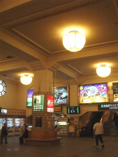 【構内】駅舎内は写真のようにおしゃれな照明で照らされています。