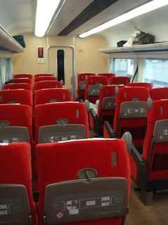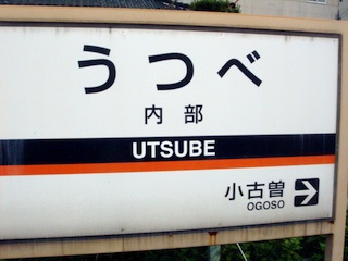 【駅名標】◇【車内】近鉄名伊特急の車内です。特急料金がかかりますが、座り心地はJRの快速みえより遙かに優れています。