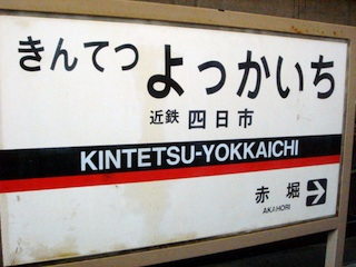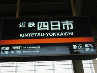 【近鉄四日市駅名標】1時間足らずで近鉄四日市に到着しました。ここで下車します。