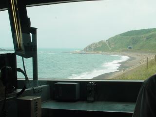 十二湖駅には十二湖やサンタランド、ウェスパ椿山駅からはスロープカーにのってウェスパ椿山などの観光スポットがあり徐々に乗客が減っていく。車内はのんびりとしてきた。線路はほとんどが海岸線にそっているので、これでもかこれでもかと海岸線の風景が目に入る。