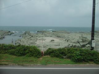 青春18きっぷのポスターにも登場したことのある驫木(とどろき)駅が近づいてきた。駅には停車しないのでシャッターチャンスを逃さずに撮ったのが次の写真。そして千畳敷。ちょっとわかりにくいかな。