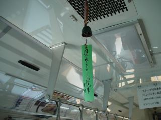 7〜8月は風鈴列車として運転している。しかしながら新型車両なのでエアコン設備があるため自然の風で音を奏でることはなく、車両が揺れた時にのみ音がでる風鈴はちょっと哀しい。太宰が見たらなんと言うだろうか。
