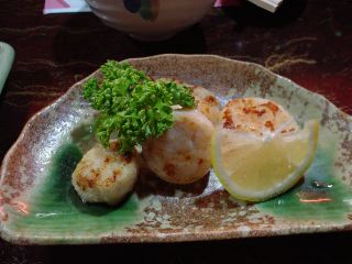 ビールを飲み、イカ刺しと帆立の塩焼きを注文する。