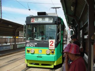 市内電車の函館駅前電停は歩いて3分くらいの場所にある。そこで谷地頭(やちがしら)行きのノンステップ電車に乗る。