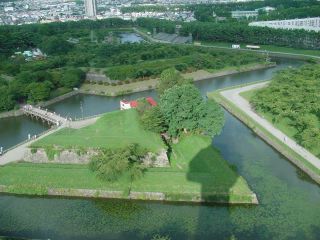 五稜郭へは五稜郭公園前電停で下車し、徒歩約10分くらいである。