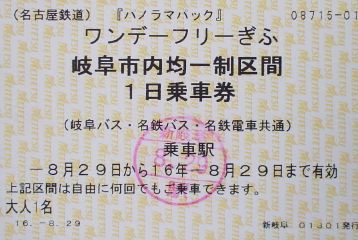 岐阜の市内電車がもうじき廃止になるというので乗っておこうというわけである。岡山市内電車が再建計画を名乗り上げたりしたのだが、どうも岐阜市としては市内電車の存在を迷惑に思っているらしい。名鉄新岐阜駅で市内電車の1日乗車券があるかどうか尋ねると「市内均一制区間の1日乗車券ならある」とのこと。530円で購入する。市内均一制区間はどこかと尋ねると「忠節〜日野橋まで」との答え。どうも名古屋鉄道のパノラマパック「ワンデーフリーぎふ」というツアー扱いになっているようだ。路線図などはいっさいなく、“忠節”や“日野橋”がどこにあるのかすらわかりにくい。名鉄自体は“忠節”や“日野橋”以降にも路線がありこれらの駅は終点ではないので余計にわかりにくい。サービスとしては最低である。名鉄もあまり力を入れていないことがはっきりする。