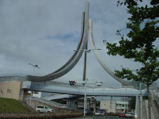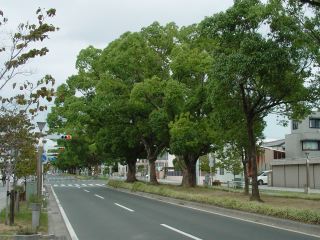けやき並木と街のシンボルのレインボータワーという名前の全方向型歩道橋を散策する。