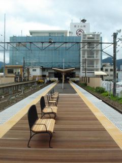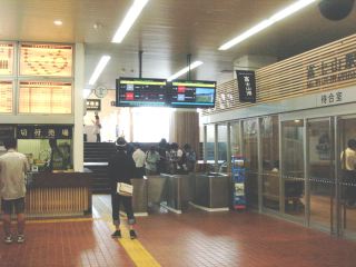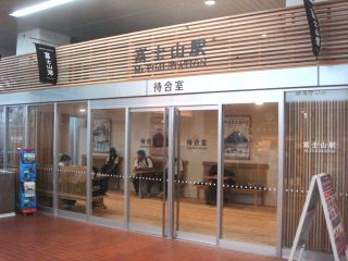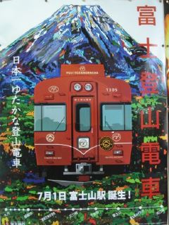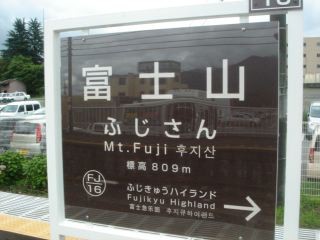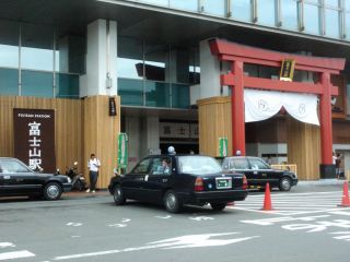 駅舎はデパートになっているので立派な駅舎である。大きな待合室や売店もあり活気のある駅である。あちこちに「7月1日から富士山駅となった」旨の表示・掲示がしてある。それにしても「富士山駅」とは大きくでたものである。売店に富士山手拭いがあったので購入した。そして2009年8月9日から富士登山電車(着席券200円必要)も走っている。