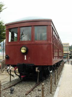 駅前広場には、富士急行の前身である富士山麓電気鉄道当時に走行していたモ1号が屋外展示してある。