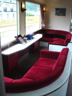 河口湖からの帰りもフジサン特急に乗る。これもフジサン特急フリーきっぷの特典である。ちょこっと指定席の1号車の展望席やサロンに行ってみた。天気がよければ富士山がよく見えるのだが、今日は雲の陰に隠れているようだ。