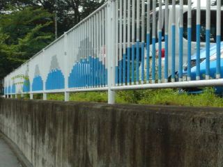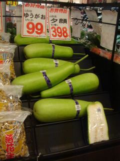 【フェンス】富士山駅近くのフェンスにも富士山が描かれている ◇ 【夕顔】富士山駅併設のデパートでは大きな夕顔が売られていた