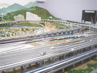 館内に入り、まず向かったのは模型鉄道ジオラマ。この模型はスケールが大きくて、線路が10本あるそうだ。つまり同時に10の車両を走らすことができるのだ。圧倒されてしまう。アナウンスで列車の説明をしてくれるのでわかりやすい。ただしあまりにも広すぎるので列車がレイアウトを一周するのに時間がかかる(笑) ほしいなぁ。自宅ほしいなぁ。でも場所がないなぁ。と自分に言い聞かせたのであった。