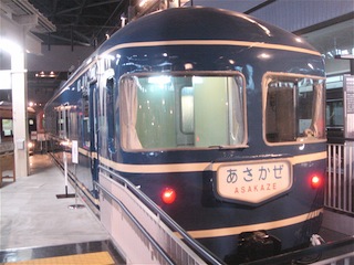 特急・急行列車の隣には寝台列車が陳列されている。こちらは車内には入れない。あさかぜは走るホテルと言われたブルートレインの象徴的な列車だ。