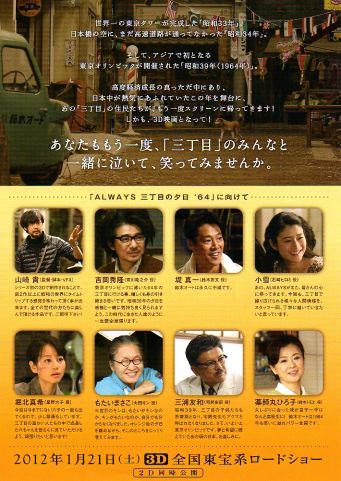 後ほど館内でいただいたパンフレットには2012年1月21日に3Dで公開されるということが書いてある。'64ということは東京オリンピックが開催され東海道新幹線が開通した年だ。