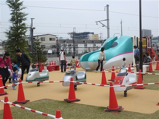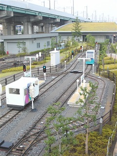 北側の屋外にはミニ運転列車がある。小さな子どもでも運転できるような列車がいくつか走っている