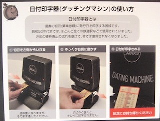 2階のスペシャルギャラリーでは「時間旅行展」を開催していた。最初の日付印字器(ダッチングマシン)以外は写真撮影禁止となっていた。撮影可にできないのだろうか。ところでダッチングマシンとは、切符に日付を入れるアレである。