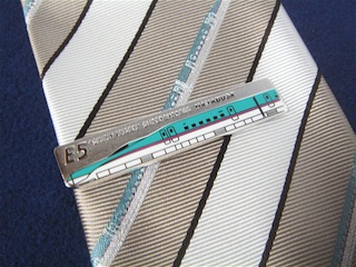 新幹線はやぶさデザインのネクタイとタイピン