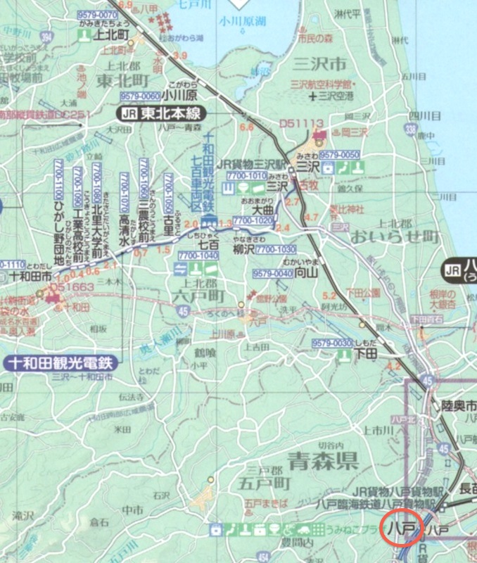 東北新幹線が新青森まで延伸したため「JR東北本線」とあるのは現在では「青い森鉄道」です。また十和田観光電鉄は2012年3月31日をもって廃止されました。