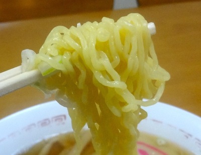 「支那そばというのはどういうものですか?」と尋ねると、「煮干しのダシのあっさりしたラーメンです」というので、それを注文しました。すぐに出てきたラーメンは、煮干しの利いた透明なスープの上品なものでした。麺は細縮れでスープの絡みもよいのです。具は、チャーシュー、のり、メンマ、なると、ネギです。あまりに美味しいのでスープをすべて完食してしまいました。
