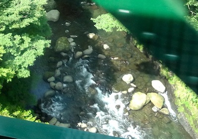 出山信号場を出発するとまもなく出山鉄橋です。川の流れもきれいに見ることができます。