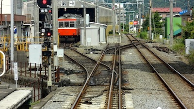 宮ノ下駅に対向列車(強羅行き)到着 ◇ 箱根湯本行き電車到着