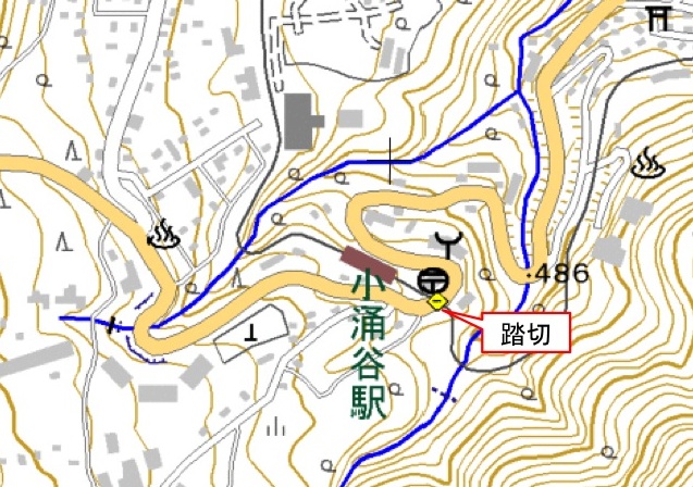 駅の近くには踏切がありました。この踏切は正月の風物詩となった箱根駅伝のテレビ放送でみたことがあります。