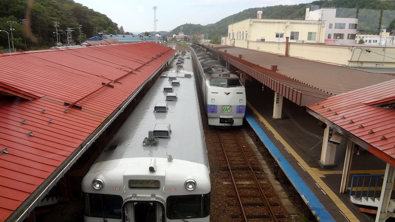定刻の11時14分に遠軽駅に到着しました。普通列車に比べると特急列車の味わいは少ないですね。でもしかたありません。