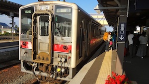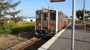まだまだ海沿いです。30分以上、海が見える区間を走ったことになります。満足です!!! 北浜駅からは若い白人のカップルが、大きなバックパッキングとともに乗ってきました。これからどこへ行くのでしょうか?