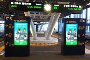 音威子府そば(開店前) ◇ 乗り場案内(次の列車は3番線の特急札幌行き)