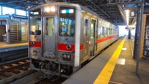 さて、車両は単行ワンマンで転換型シートのセミクロスでトイレ付きです。この列車で今日は約6時間の旅をします。