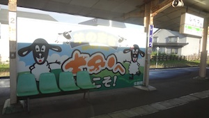 士別に到着しました。剣淵から乗ったスポーツ少年・少女達は士別で下車しました。光の加減でちょっと読みにくいですが、士別は“羊のまち”なのだそうです。