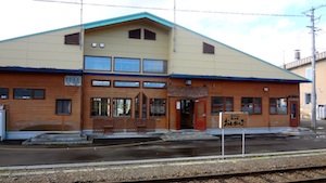 ホームには機関車の形をした木製のベンチがありました。大きな駅舎があります。それもそのはず、天北線が健在だったころは音威子府は分岐駅で要衝の一つでした。