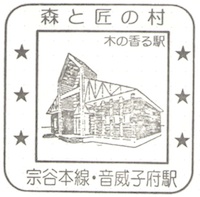 そのため駅構内は広々としています。スタンプには、「森と匠の村」「木の香る駅」と記されています。
