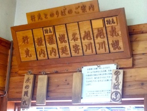 黒いそばで有名な常磐軒は開店前でした。9時30分に開店します。旭川から乗ってきた若者団体は、どうもこのおそばが目当てのようで、ここで下車し開店を待っていました。2006年に食べましたがその様子は“こちら”です。駅舎には天北線資料室もあり、在りし日の天北線の想い出がたくさん詰まっていました。「森と匠の村」「木の香る駅」の音威子府らしく、乗り場案内にも木が使われています。