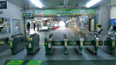 藤沢駅南口にそびえ立つ小田急デパートの2階が江ノ電の藤沢駅になっています。