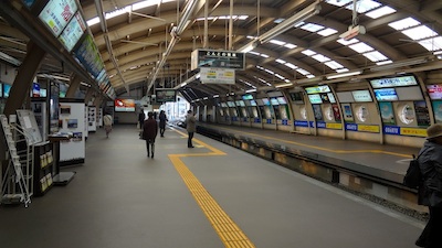 まず鎌倉・江ノ島方面から電車が来ました。藤沢からの電車を待っています。