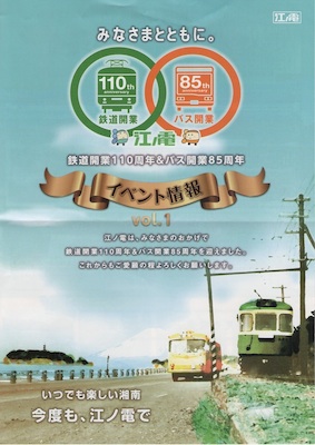 駅構内にはイベント情報のパンフレットがありました。江ノ電バスも開業85周年を迎えるので、鉄道110周年とともにいろいろな行事が予定されていました。