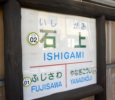 高架の区間を過ぎると地上を走ります。すぐに石上駅に到着しました。ガイドによると「石上駅は唯一の高架駅」と紹介されていますが、これは間違いです。高架駅ではありません。
