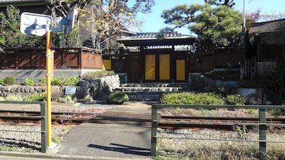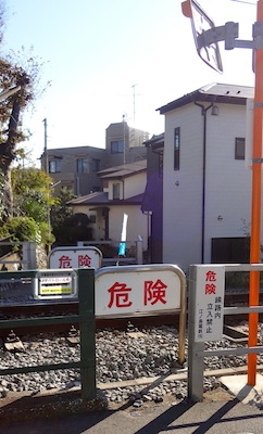 しばらく歩くと左手に個人宅専用踏切がありました。江ノ電沿線では時々見かける風景です。