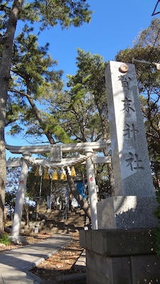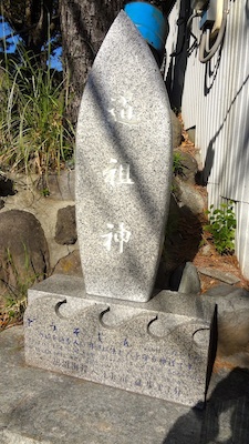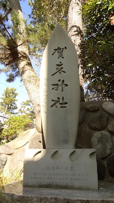 鵠沼駅に近い方の入口にはサーフボード型の石碑があり、文字は「勝海舟の拝書」のようです。その近くには同じくサーフボード型の道祖神の石碑がありました。