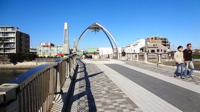 片瀬江ノ島駅の目の前にある歩行者専用の弁天橋を渡り江ノ島入口に向かいます。